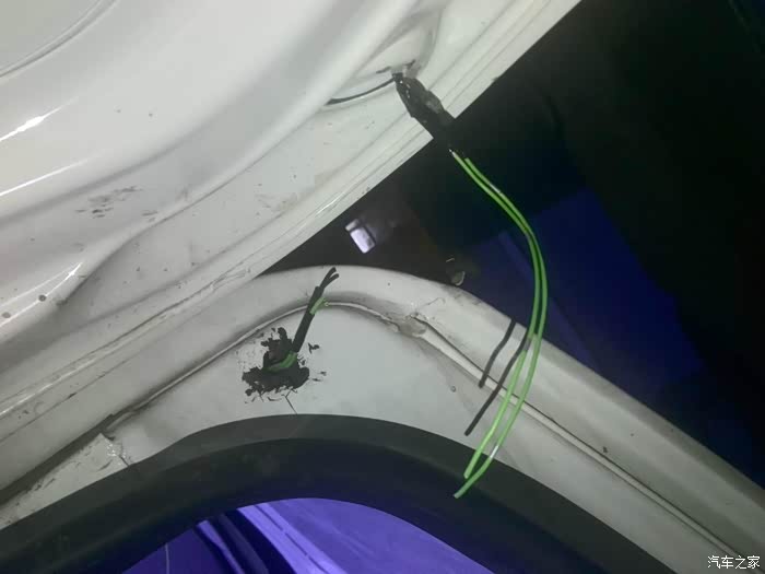 难道在这里 依旧没问题 后来我用万能表测量挂倒档是影像是通电的 然后视频端也输出电流 在导航哪里依旧没电 后来我忽然想到尾门走线 结果不多说上图