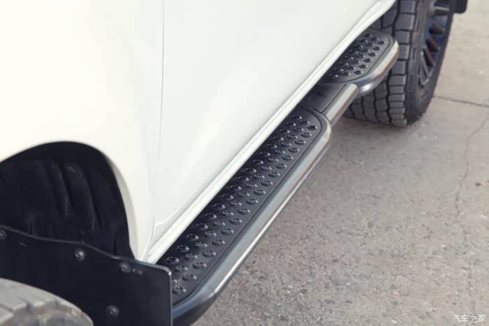最后就是侧杠,我换成的是抱大梁的一体成型款。一是强度更高;二是这个杠的侧面是完全光滑的,遇到有石头什么之类的可以直接滑过去,不伤车身。并且因为强度足够,还可以直接用作车子的千斤顶支点。