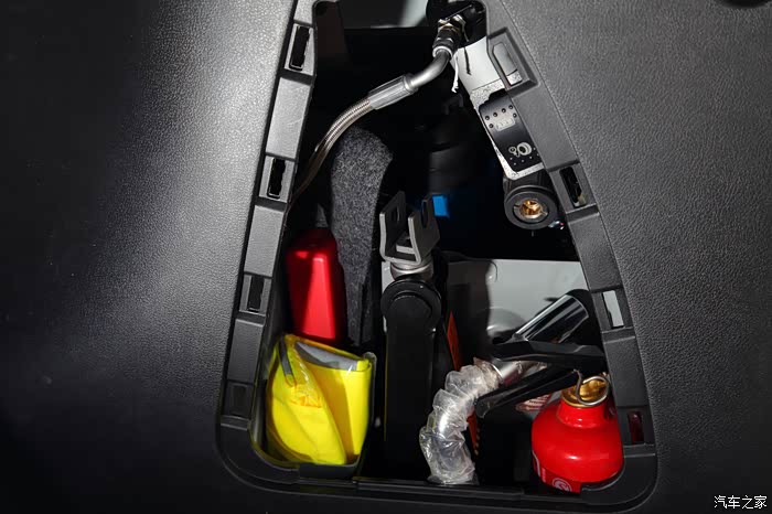 我在后备厢工具格里安装了ARB双缸气泵,这个方案是复刻了韩路的做法。它完全不占车内空间,可以随时给轮胎进行充放气,并且我这还配有气枪,可以吹吹车内或者发动机舱内的灰尘。