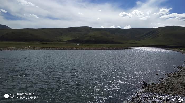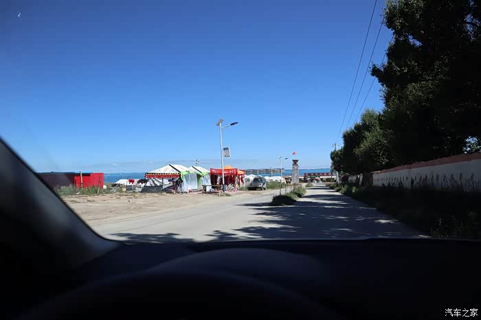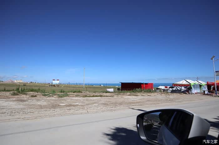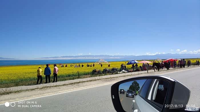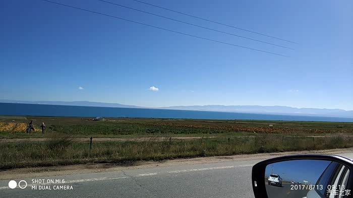 一出路口,顿时给眼前一线有别蓝天的蓝色惊呆了,没错!就是我十多年前就想带上老婆(当时还是女朋友)去一眼的青海湖,今日如愿了。