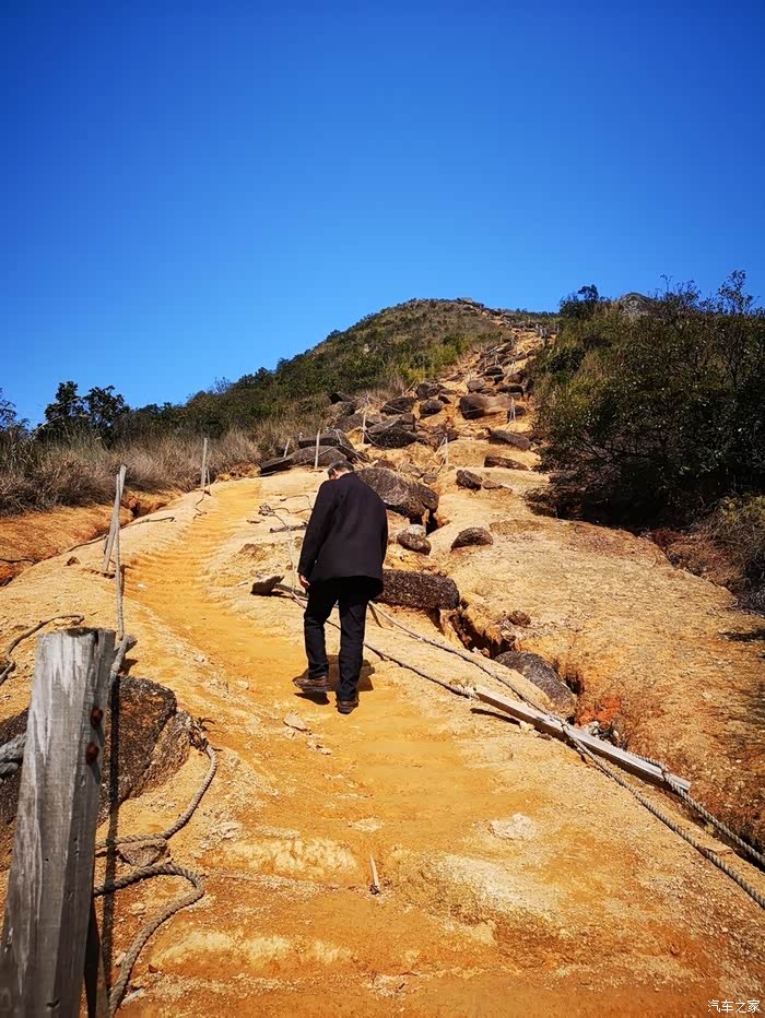 这才是开始,最难爬的地方,这是第一坡,老爸说给他留个影