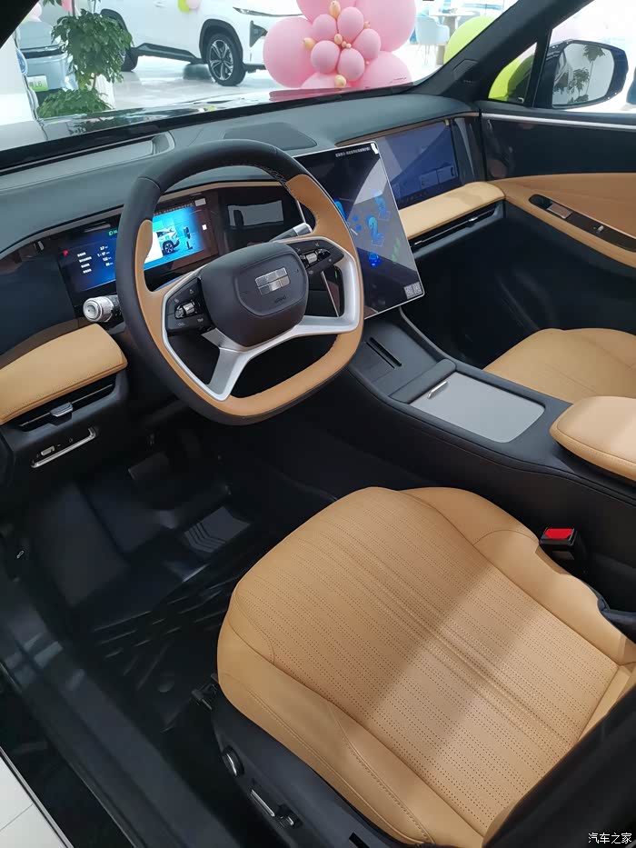 内饰是熟悉的吉利风格,配备了内嵌式的10.25英寸的仪表13.5英寸的中控屏16.2英寸的副驾屏还有25.6英寸的AR HUD,可实现四屏智能交互,做工很惊喜,手能摸到的地方都是软包,后排空间很好,座椅专门加厚了,乘坐较为舒适,不错喔。
