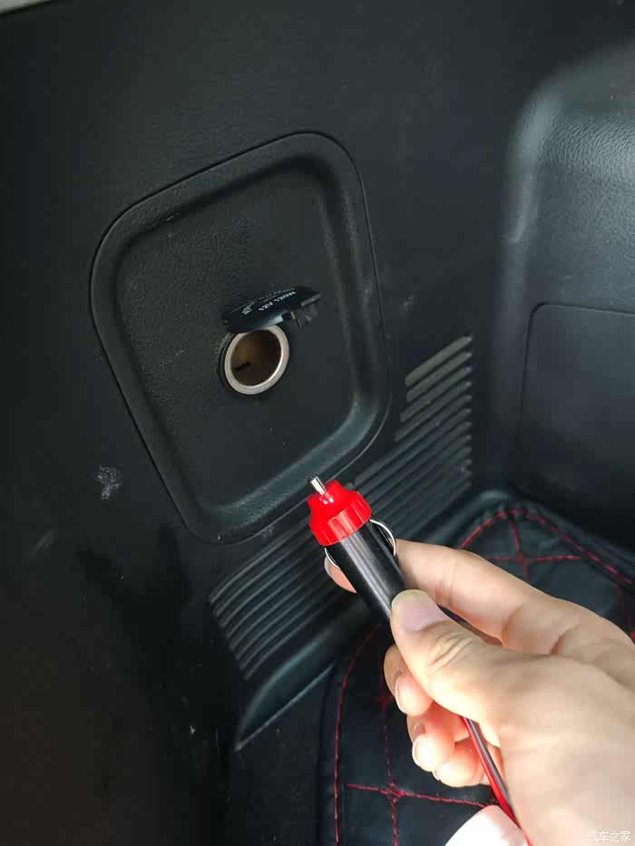 点烟口的插口要插到后备箱的这个点烟口插孔内,用电瓶取电