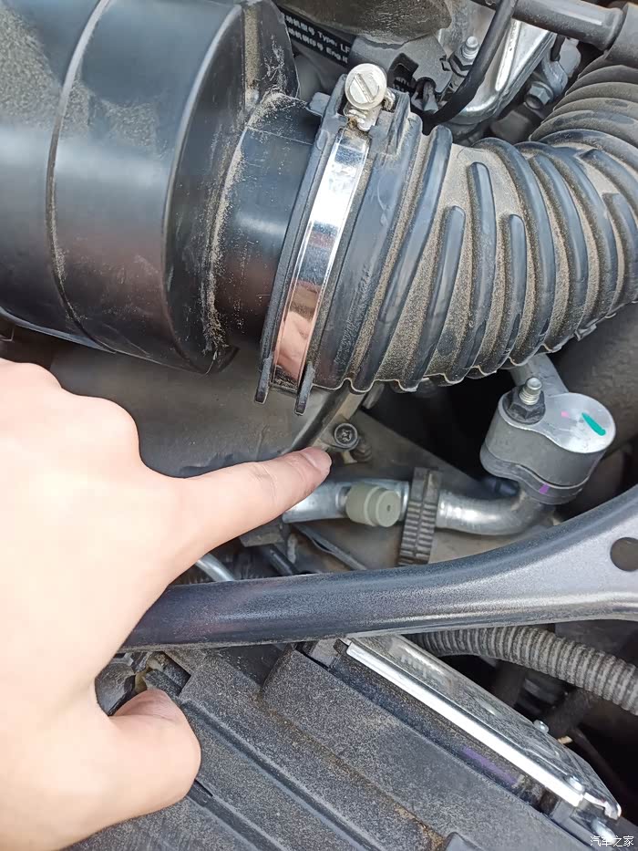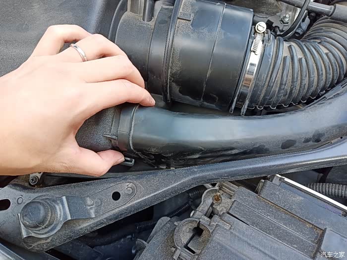 进气管卡箍拧松,进气管有点紧,拔下来的时候挺费力的。