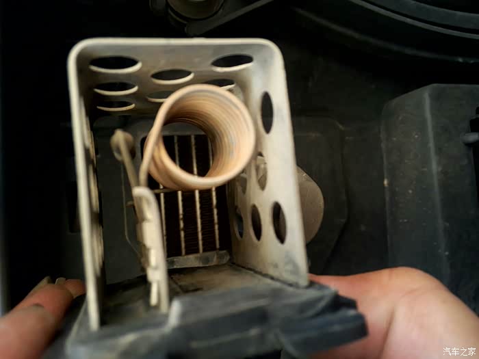 最近一个月车车有这么个问题:高速或50以上匀速行驶水温正常,一旦停车等红绿灯或怠速,不到俩分钟水温就高起来了,一直到105度时高速风扇启动运转,后来上论坛求助幸得高手有相关解决帖子,经检查我的也是这问题,所以如果车友有发现如果扇热风扇低速不运转就可以考虑更换此低速感应电阻。于是今天下午按照论坛里指导把感温电阻换了,下面说下过程供车友参考。