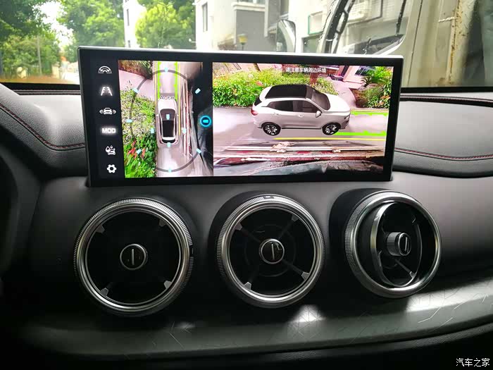 VV5的全景影像,3D的画面,车子缓慢行驶的时候,画面中的车轮还在转动,看着就很高级!视觉效果很棒!