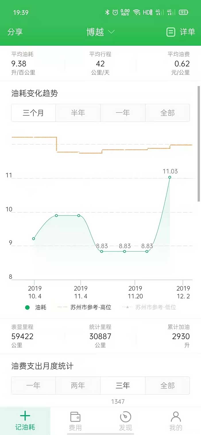 2、油耗表显示8.8,实际高速表现一箱油120KM/H的速度下也就620公里左右,100KM/H大概680公里续航,车身重量偏重,高速上开起来特别稳,所以牺牲点油耗在我的接受范围之内。