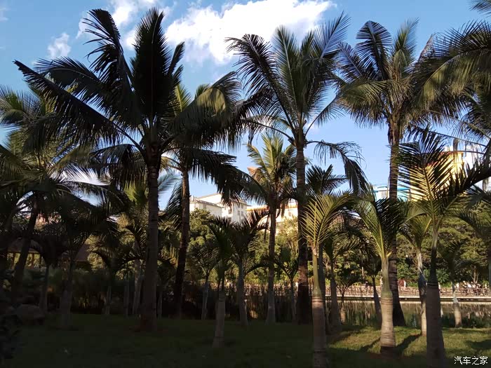 蓝天白云,两旁都是具有东南亚特色的热带植物,心旷神怡。