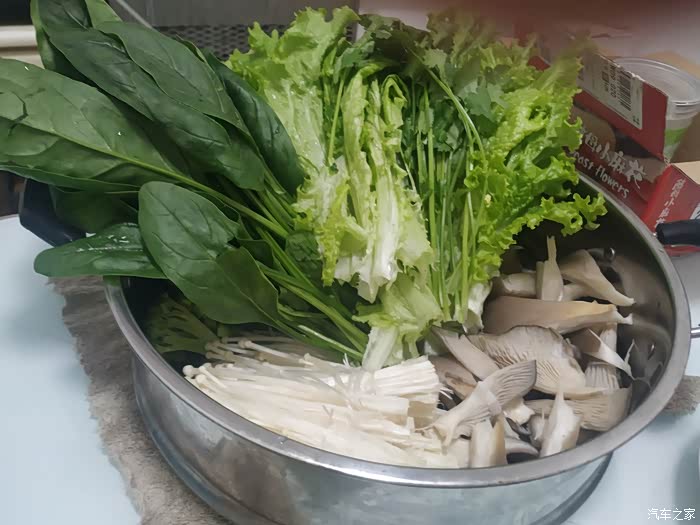 蔬菜来啦,下面还藏着西蓝花。说实话,今年冬天蔬菜特别贵。