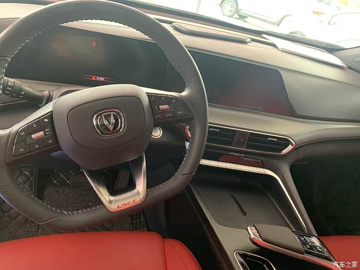 UNI-T的内饰是黑红搭配,一体式napaa皮纹运动座椅看着更加有质感