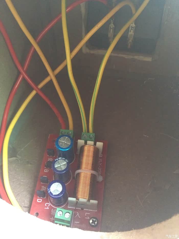 分频器用自攻螺丝固定在音箱内