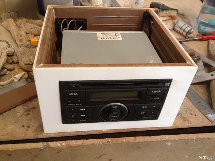 其实之前在论坛看过车友的作品后都有自己做一套的想法,前段时间也比较忙,所以迟迟不动手。住在广东的朋友可能深有感触,就是每年三四月份的回南天,到处都是湿漉漉的。我的CD是去年自己换了逍客CD拆下后一直扔家里角落里,回南天那几天搞卫生才看到,外面全是水,里面估计应该也潮湿了,心想如果再不搞可能要废了,所以就有了这篇帖子。我公司是做浴缸的,有很多亚克力的废料,也是废物利用,CD盒和音箱都是用亚克力加1厘米密度板做出来的。开始吧
