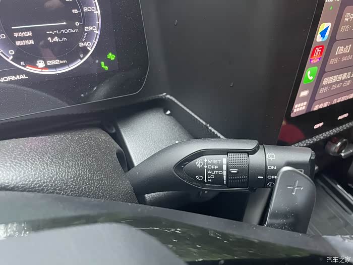 2、雨刮器有很多种模式,但是我觉得大狗这台车,选择auto模式是最好的,不用人为的去调节雨刮器的速度,自动感应雨量大小,可以让我们更专心的开车。