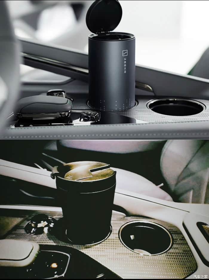 中控两个水杯架,一大一小,小一些的可以放一些保温杯等相对小一些的水杯。大的水杯架推荐大家买一个极氪垃圾桶,与大的水杯架位置完美贴合。虽然300ml的容量不是特别大,但平时一些纸巾以及瓜子等等杂物都可以放在里面,还是很不错的。无线充电的位置,基本也就放放手机充电。因为设置了挡板,所以手机充电起来还是很平稳的。不用的时候,记得关闭无线充电板,防止充电板处温度过高引起危险。