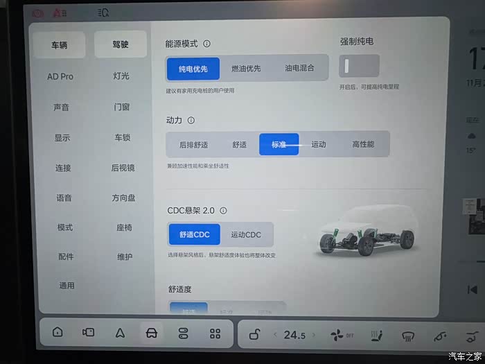 L8的动力也算很强劲了,因为是双电机嘛,加速很给力,好像是5秒多就能破百,动力还是很强的,动力模式也有多种,有后排舒适,舒适,标准,运动,高性能这些,我基本上就是用标准动力模式,也足够日常 动力使用需求了。