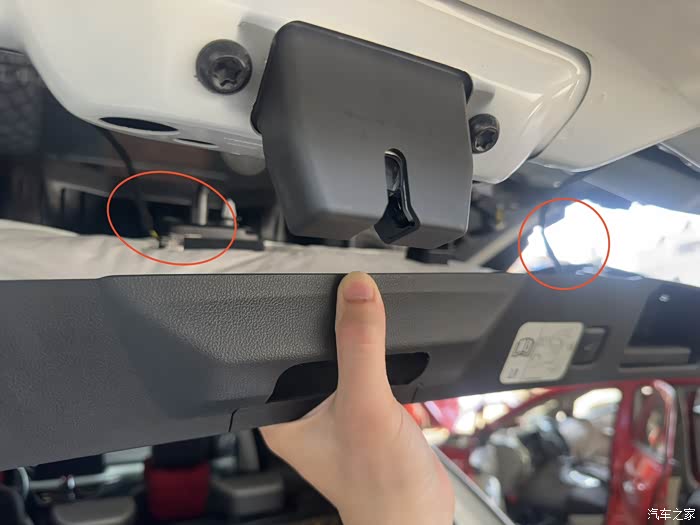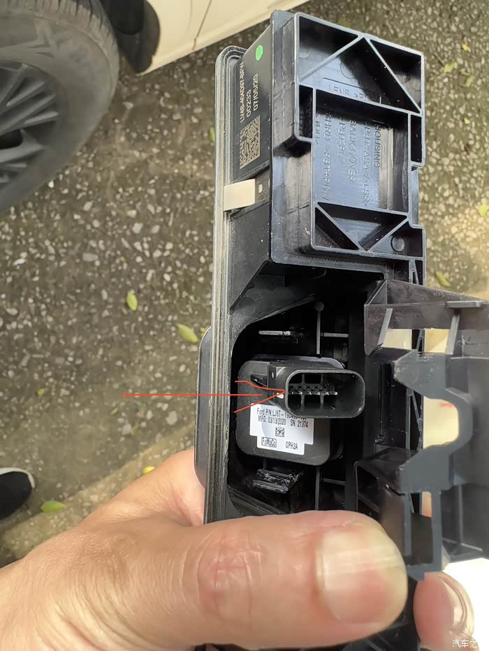 千万不可太过用力,全部掰开后,这两个位置有两个插头,一个是尾门灯,一个是尾门开关,这两个插头要拔掉才能把内饰板取下