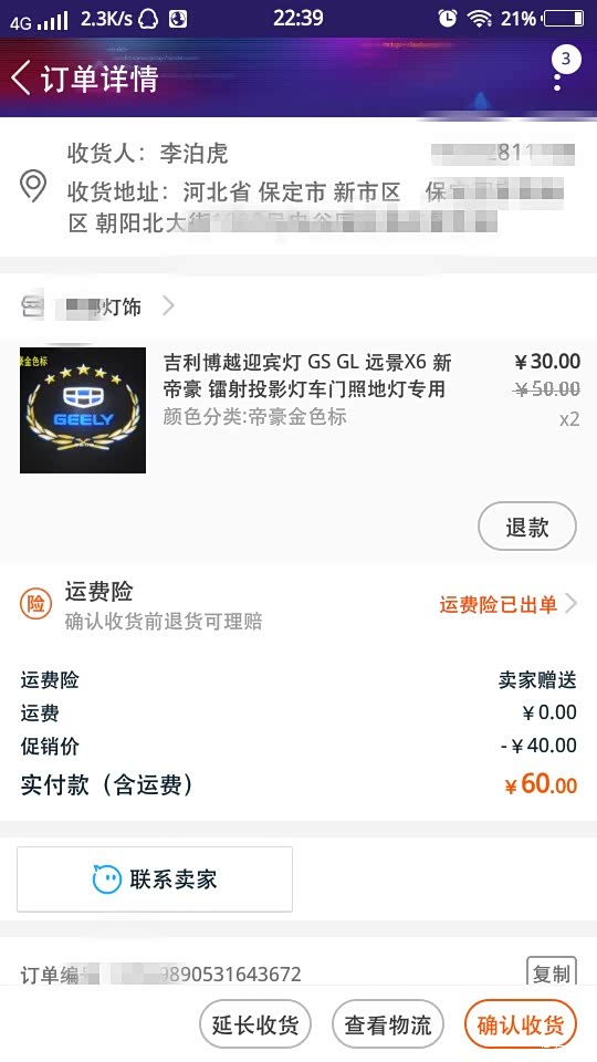 ,大半夜的拿着手电自己在外面给GL安装我心仪的神灯