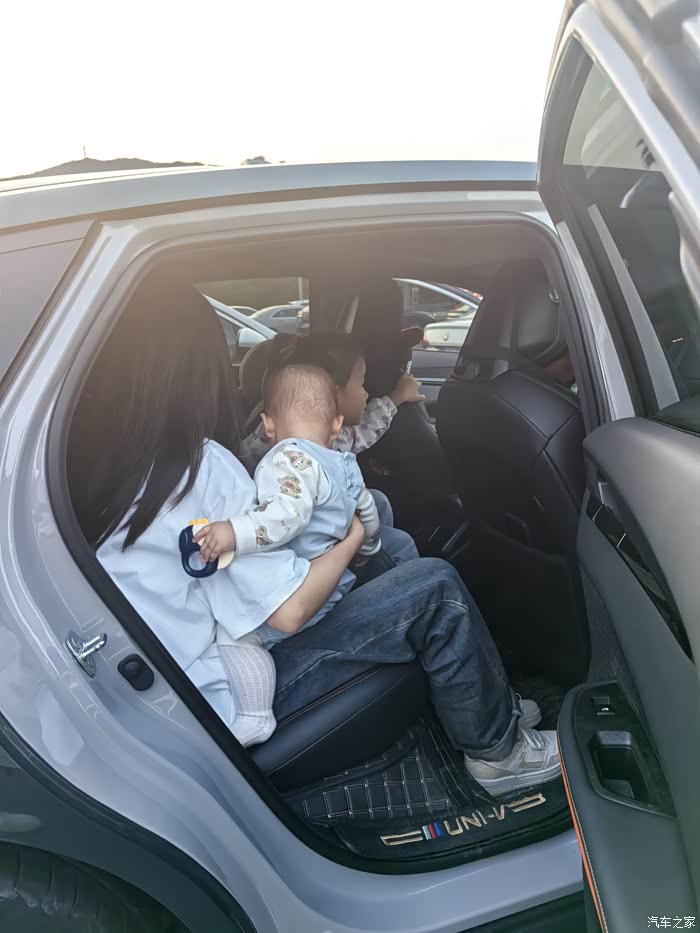 停车场里UNI-V的天窗成了观景台,大宝扒着玻璃看飞船造型的场馆,安全座椅里的小宝啃着UNI-V挂档杆上的毛绒玩具。车里常年备着的湿纸巾派上用场——刚进乐园大宝就把冰淇淋蹭在了车门把手上。