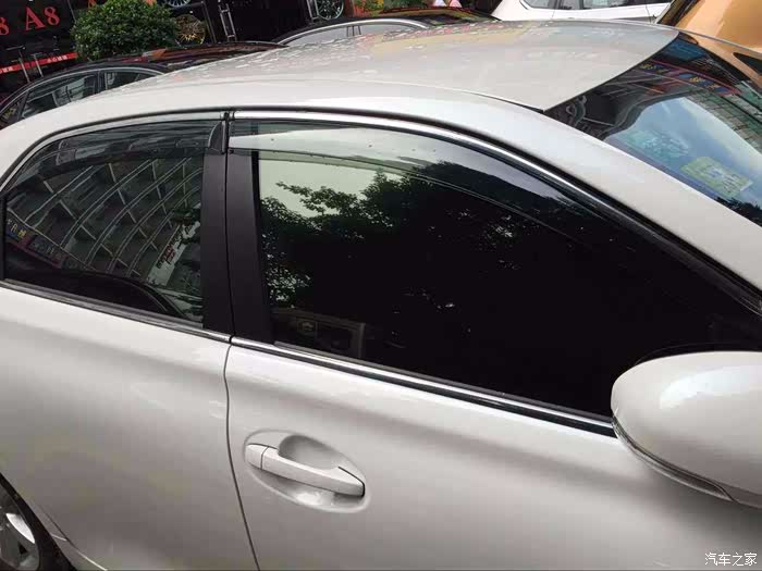 雨眉的学名叫做晴雨挡,他最大的好处,就是能在下雨天的时候,可以让你的车窗在降下一定高度的时候,也不会有雨水滴入进来。就像图片里所展示的一样,车窗与车顶之间留有那么一丝丝缝隙,但是那个缝隙你可不要小看它,通风作用还是得靠他呀。