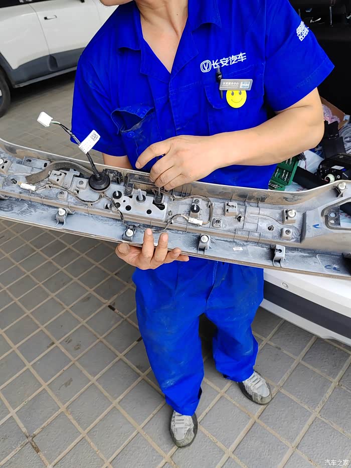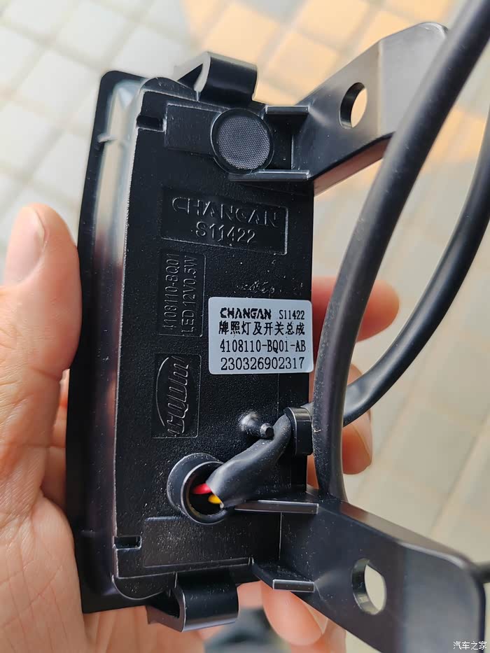 师傅手上按住的地方,就是牌照灯+开关总成位置。