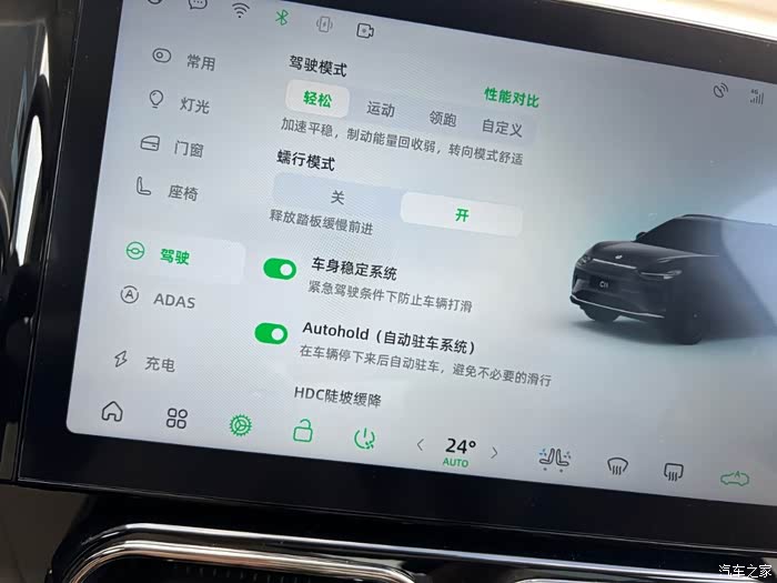 首先是车子的设置,我的轮胎胎压在夏季一般也会维持在2.7左右,这个数值是我自己测试下来最能平衡舒适和低摩擦力的取值了,当然也有一些朋友可能不在乎这么一点细微差异的舒适性,那把胎压打到2.8甚至2.9也是没问题的,不用担心爆胎与否,这其中具体的科普我就不多说了,大家可以去看看相关的视频内容。其次是车身的设定,因为 C11的空调这种车上用电的能耗是不计入行车能耗的,所以很多时候我们往往会忽略了除了开车以外的其他用电情况,比如空调,我在夏季刚上车的时候会设置在22度自动风,等车内冷却下来我就会把温度放在23到24度,这时候制冷压缩机的负荷没有那么大,用电能耗自然也就会小一些。
