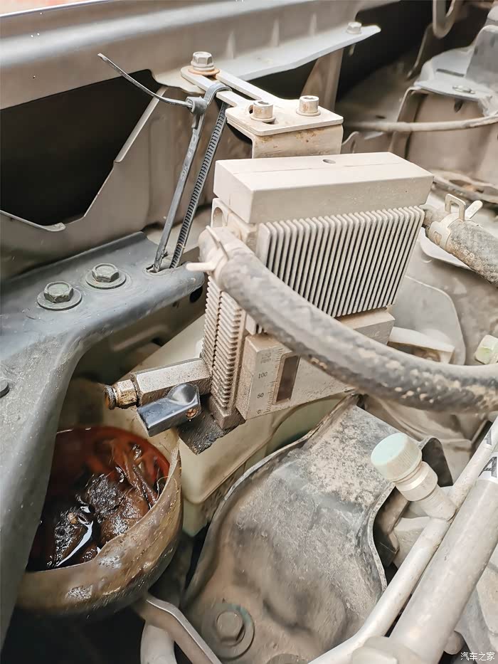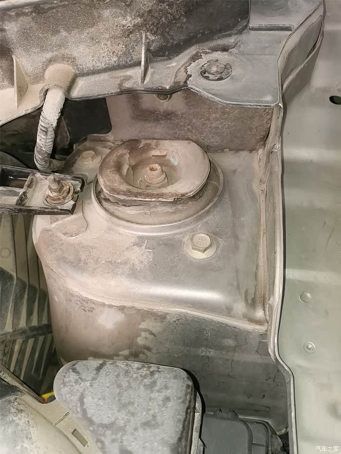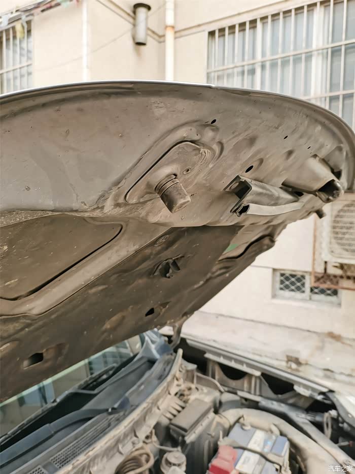 第三个噪音困扰时间比较久,首先是判断方位比较困难,开始总觉得是在驾驶室内前档玻璃的上部,各种拆、按、砸,不得解。后来在一次放回收的废机油的时候,扣下发动机舱盖的时候感觉有点间隙,而且按下会有***的响声,猛然间茅塞顿开,找到噪音出处:机舱盖前部两端各有一个带螺旋的橡胶柱,拧动就可以旋进旋出,支撑起机舱盖。我的车不知是什么原因橡胶柱旋进太大,长度达不到支撑机舱盖与机舱,形成间隙,车辆抖动就会产生噪音,旋出几圈,轻松解决。