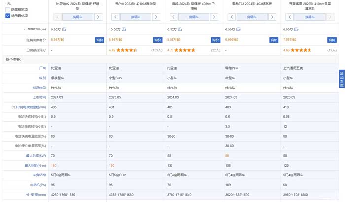 400公里续航,这几款品牌车型大家给个建议吧,五菱缤果怎么样?
