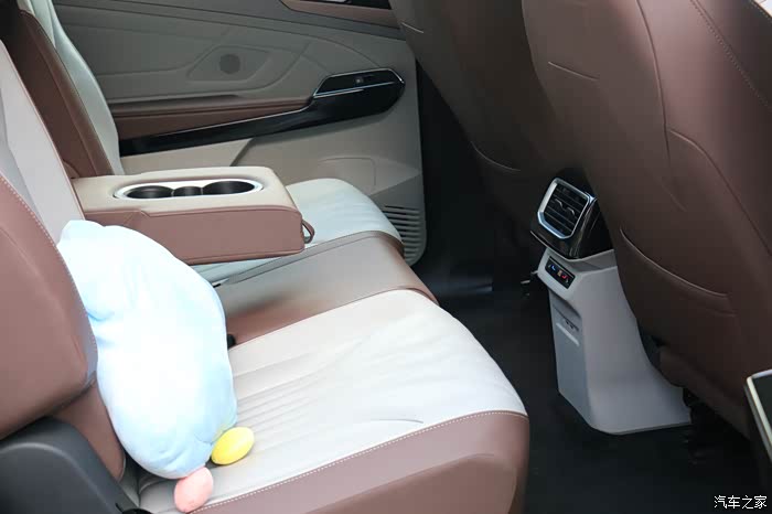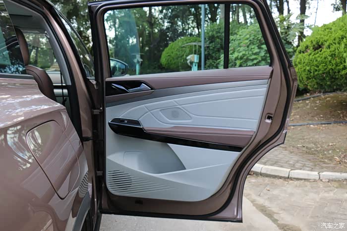 ID.6 X轴距2965mm,长宽高分别为4876mm、1848mm、1680mm,布置六个座位显得游刃有余。