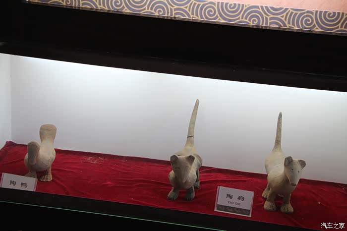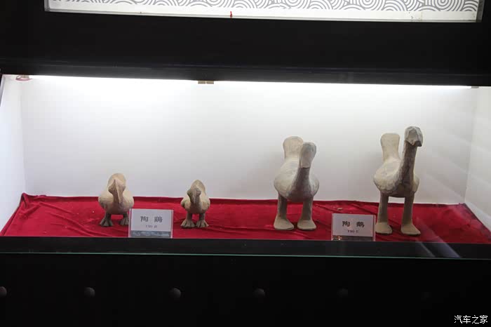 曹植铜像两边是曹植墓出土文物:陶鸡和陶鹅