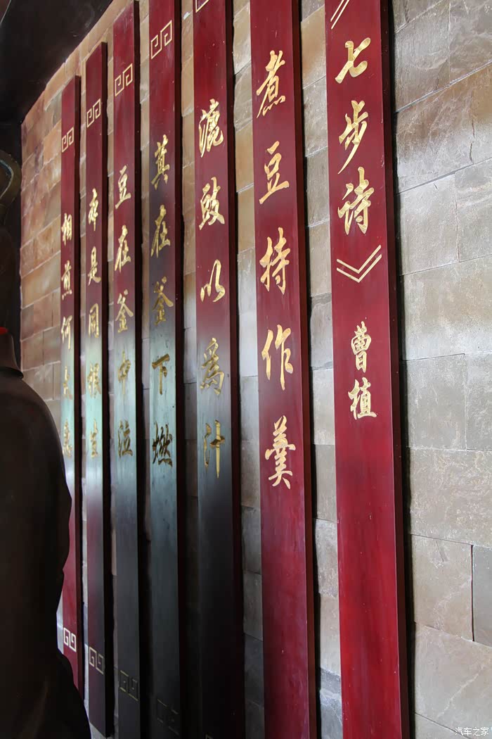 在子建祠,我们看到了曹植的七步诗后才知道,我们多少年传颂的那首二十八个字的,原来不是曹植原作。他的原作是是六句三十字。