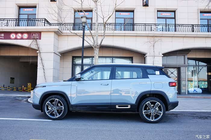 侧身的线条方正有劲悬浮式车顶很带劲。