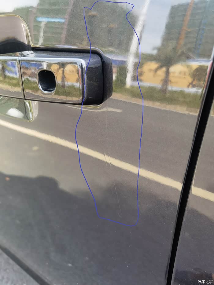 这块痕迹不知道是胶水还是补的漆,反正洗不掉,拿砂轮磨也磨不掉,似乎是油漆未干就把贴纸贴上了遗留下来的,让我很怀疑是不是有车损,但其他没见异常,只是就在驾驶位,每次上车都见到,心里非常不爽。