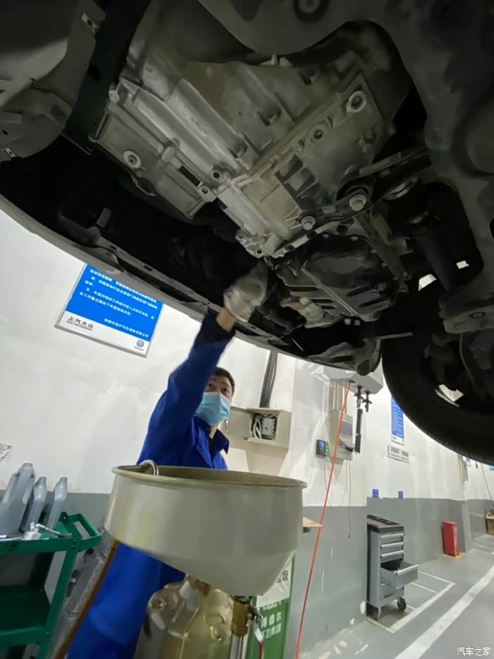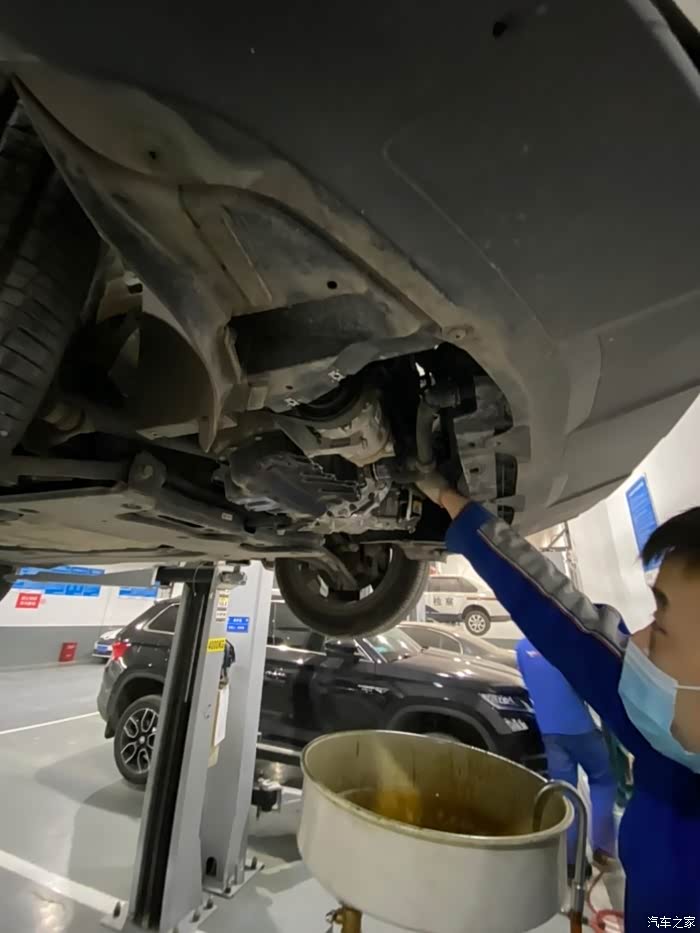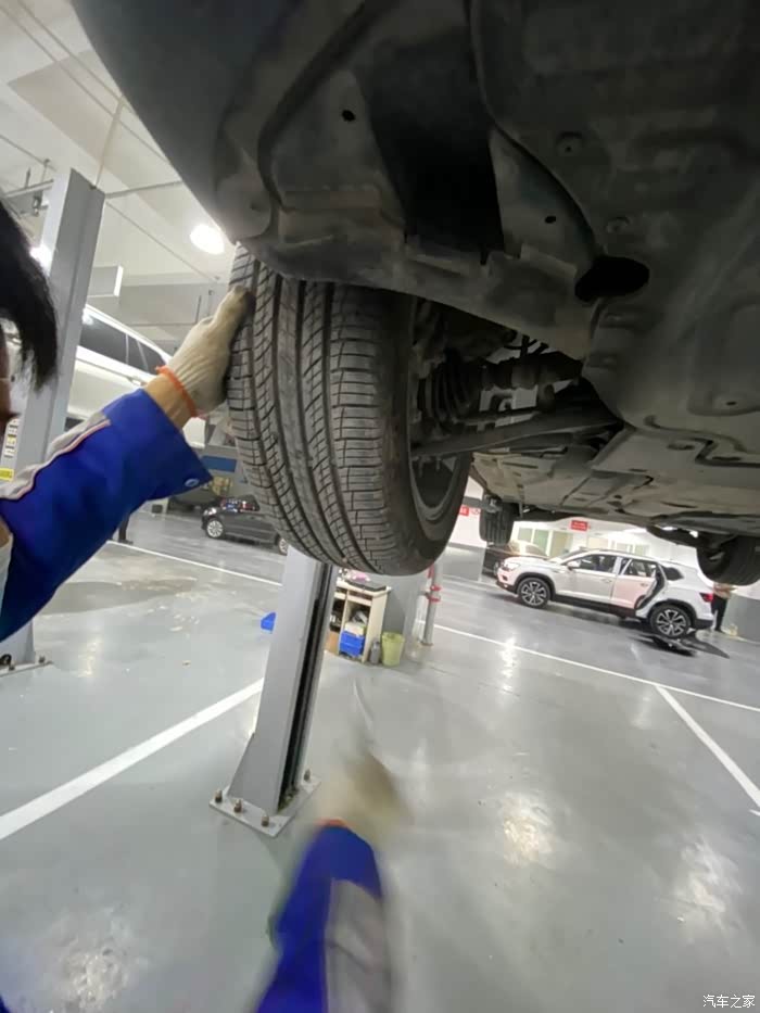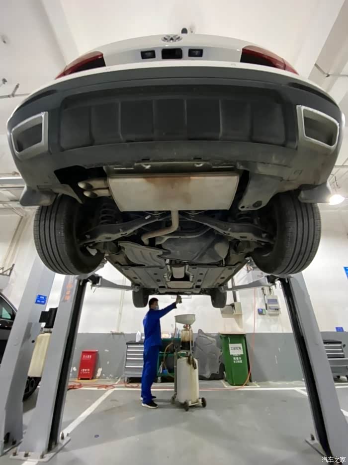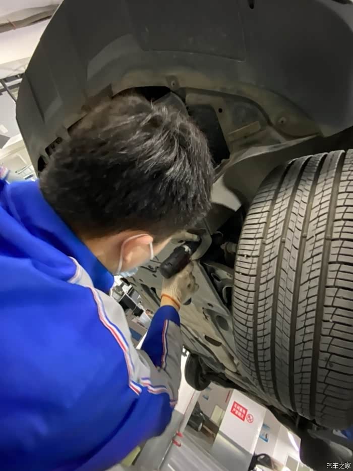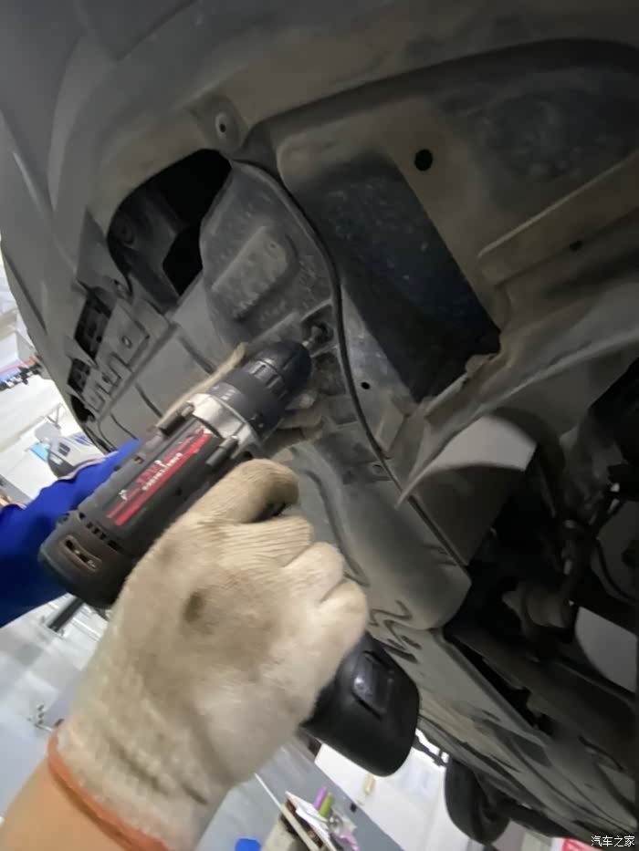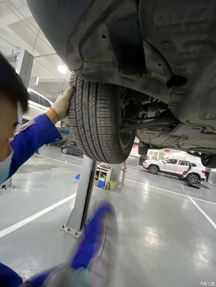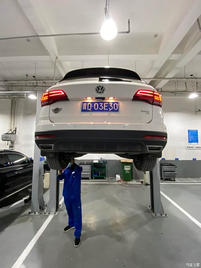 车开到车间后,师傅熟练地把车开到铁架子里面,升起来,拆护板,卸螺丝,一顿熟练地操作,我就在旁边看着,偶尔问问关于蹭底盘啊,上马路牙子啊,刹车等问题,师傅也是认真帮我解释,像什么前后轮到一定时间后得倒腾一下,防冻液到刻度值后得加一下,玻璃水入冬了得加零下的,总之学了好多,关键是这一顿操作完全免费,哈哈,真是人品大爆发了。