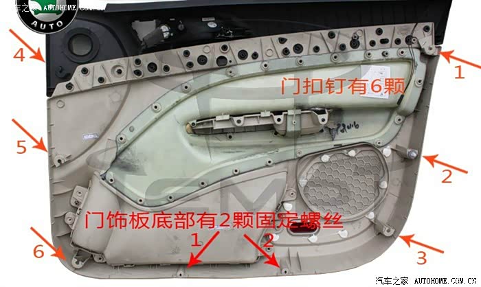 车门按键面板后面有三颗大的,需要长柄T30螺丝刀。