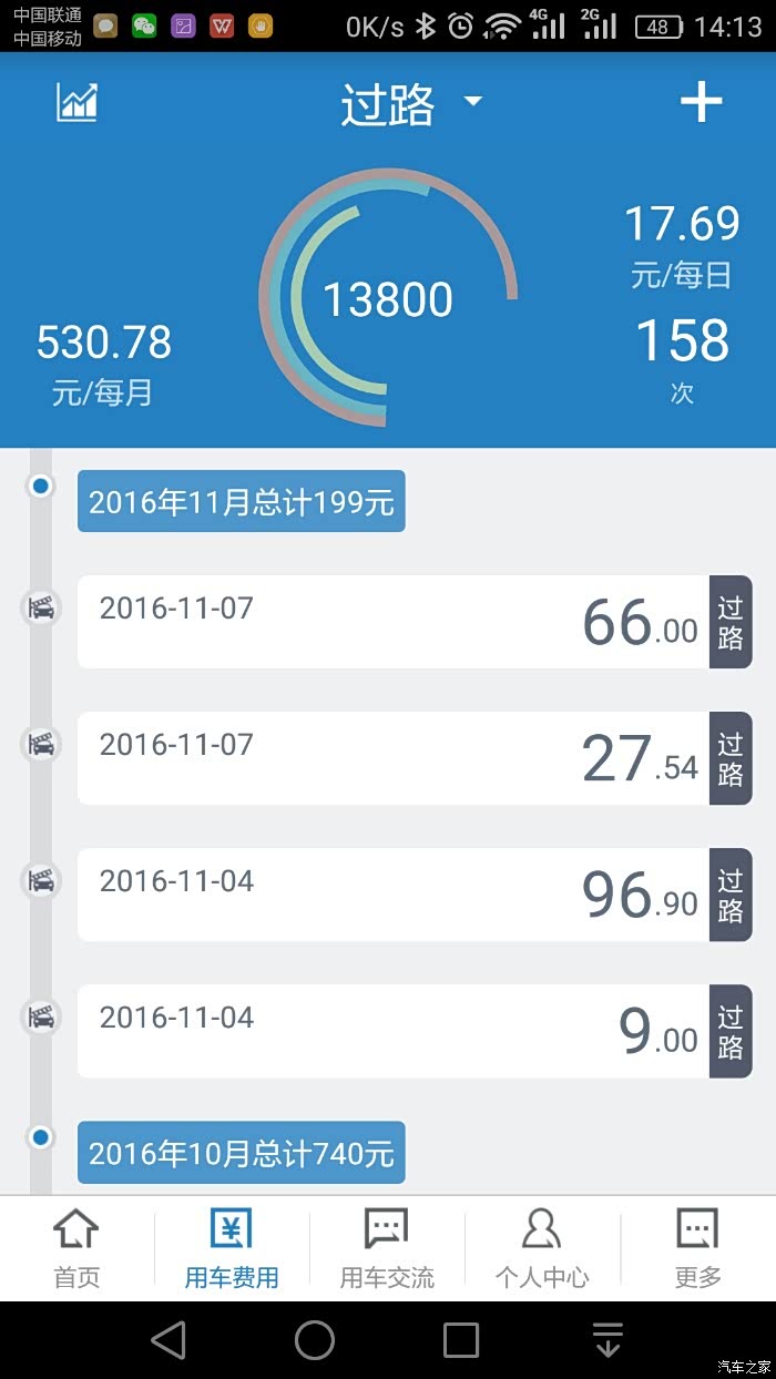 关于过路费,一个字,贵,中国的高速过路费肯定是……算了不说了,谁让我只是**,下图是从14年8月份开始到现在的过路费