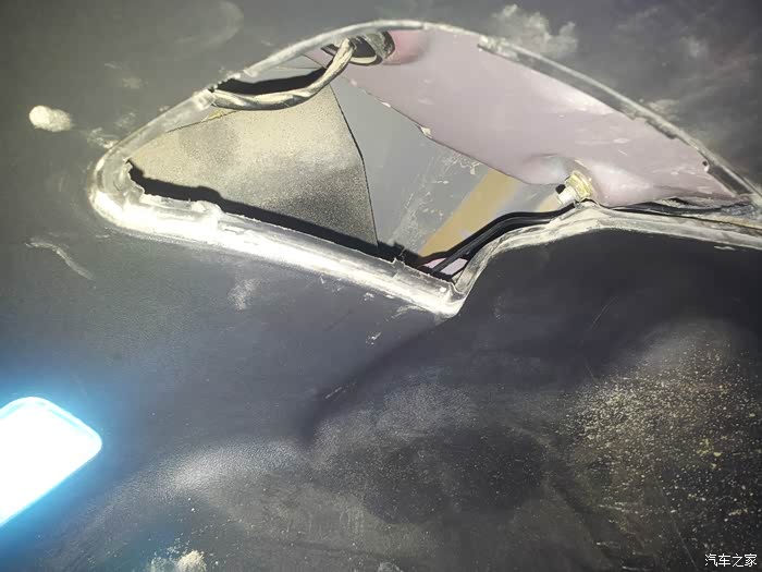 这是接后摄像头用的穿线位置要从右侧后车门底部拆开门边套那里用铁条穿入到此地中转!