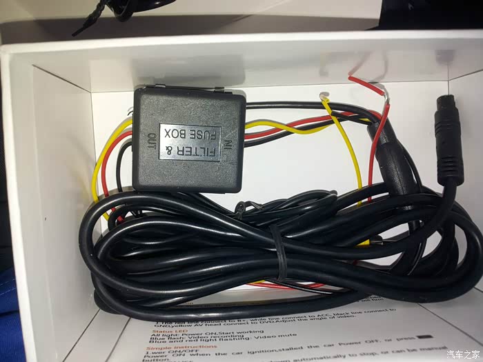倒车适配线与后视摄像头 后视摄像头总体很清晰感觉挺实用 ,冬季晚间因汽车尾气原因出现飘云现象(位置安在后牌照灯中间钻孔穿线倒装,调整摄像头垫片个数调整角度)
