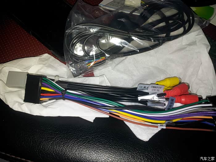 这是无损安装用到的转接线 有两个视频输入一个倒车后视 一个行车记录仪,当时搞的时候有些头大,不过看着线序及标签一会就明白了,也就那么回事啊