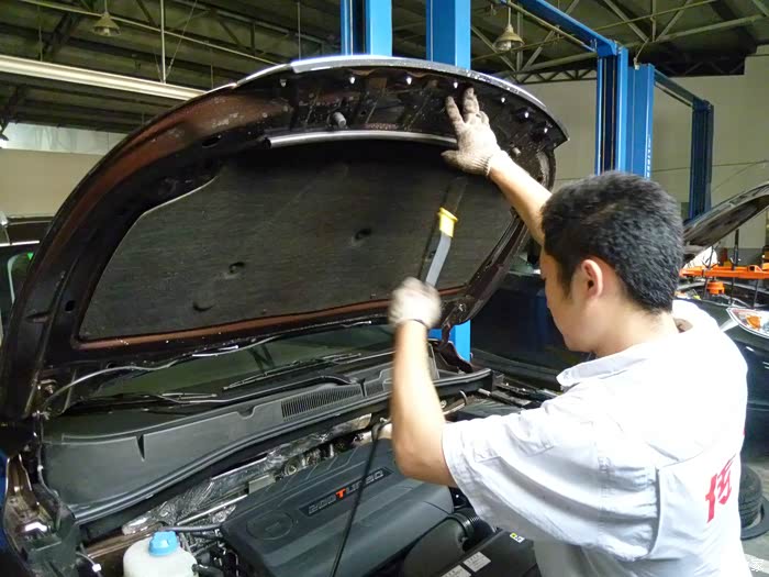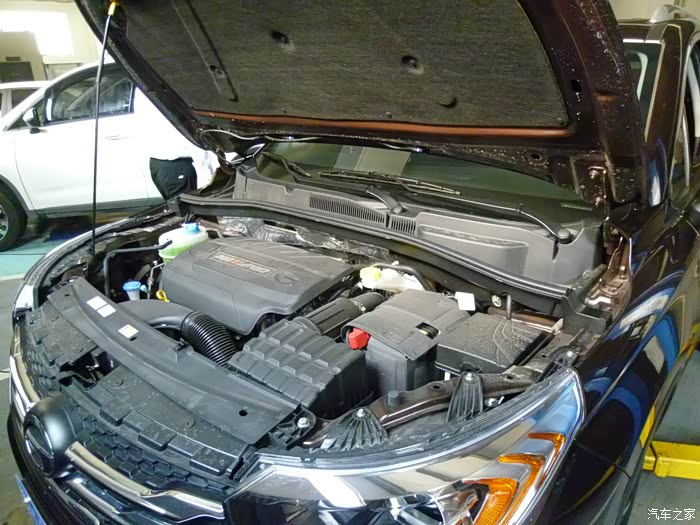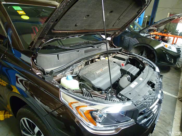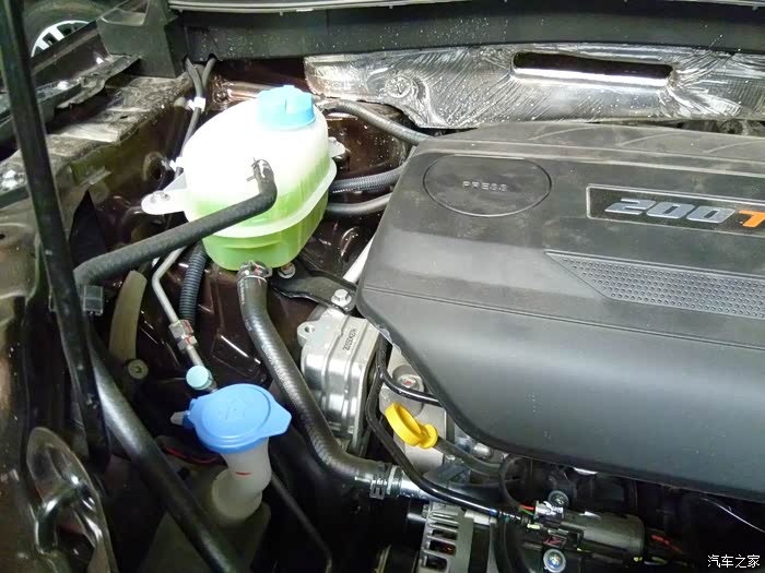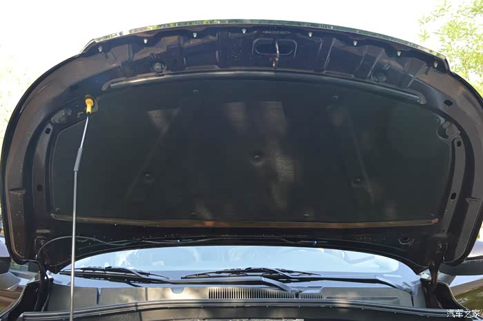覆盖面积很大的发动机盖隔音棉,表扬。但发动机盖支撑杆却不厚道,要是像GS5或速博那样是液压的支撑杆就好了。