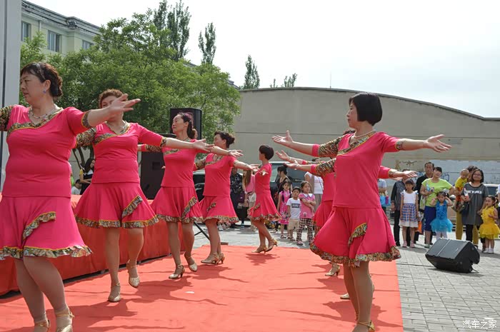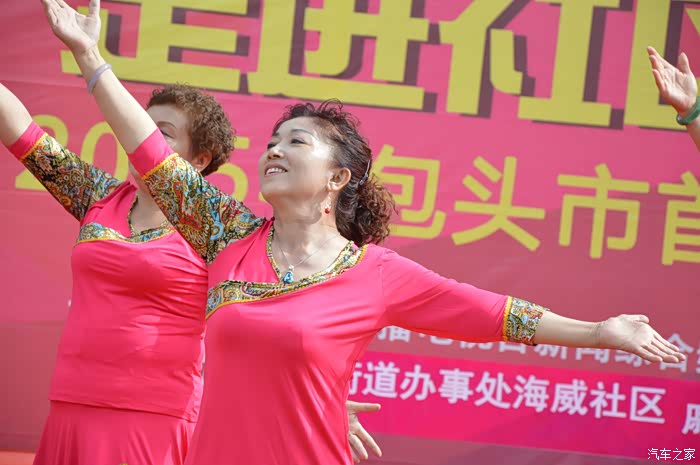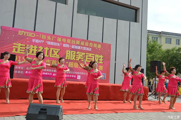 社区阿姨先上台表现,阿姨们人到中年但一个个身手矫健,舞姿优美很有风采。体现时代风貌。