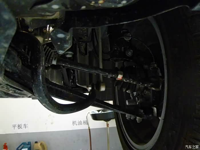 托起小四,底盘一览无遗,店里本来说送油底护板的,到现在还没到货,真着急呀。
