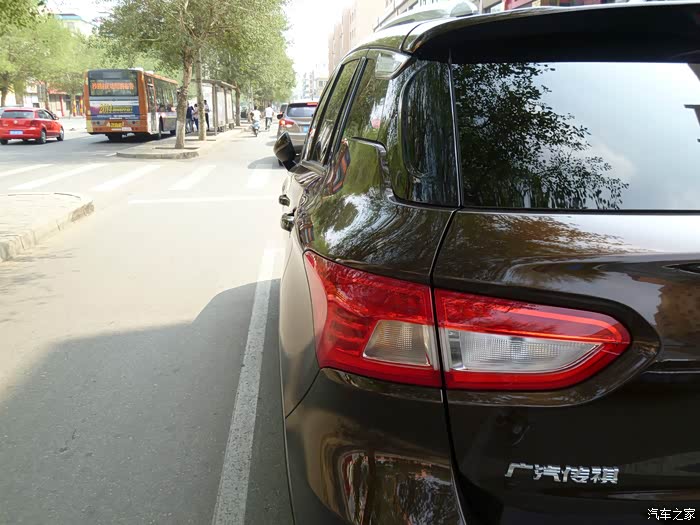 尾灯灯腔里的传祺标识,由于灯罩是红色的,不是很醒目。