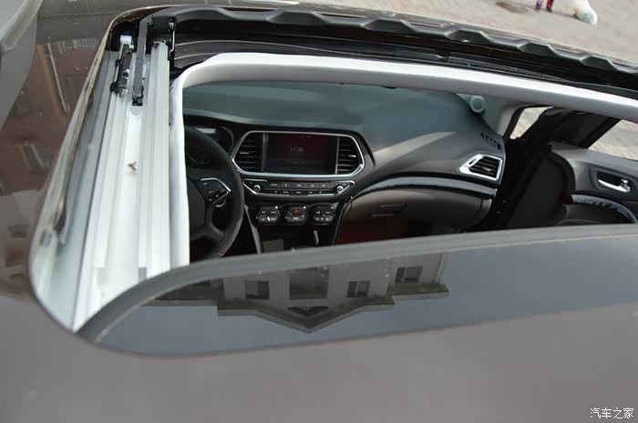 从天窗俯视前排中控台,以及目前还很干净的天窗轨道。
