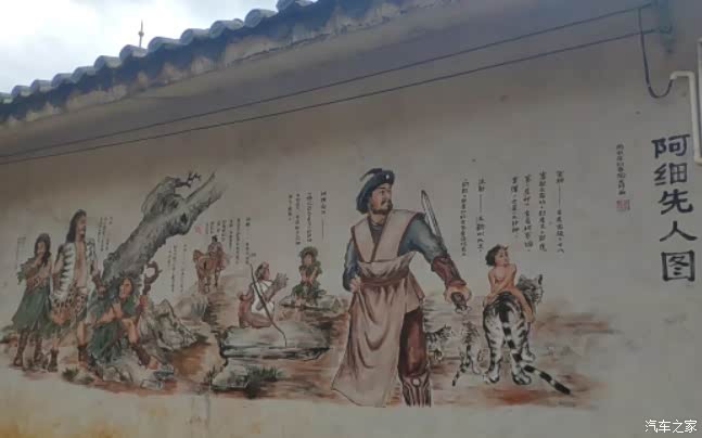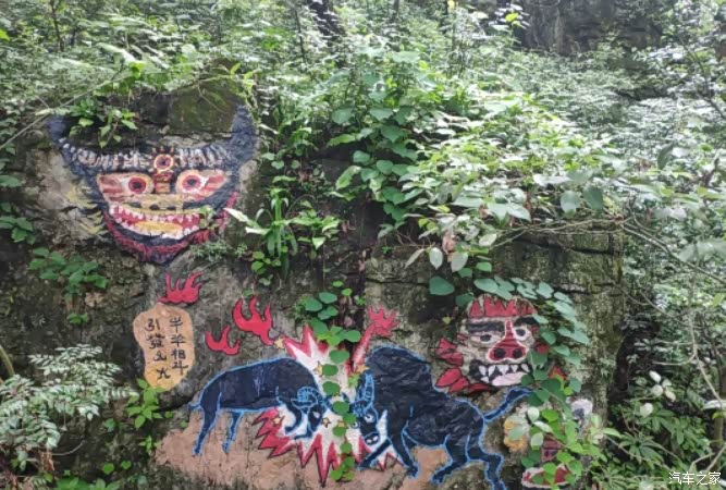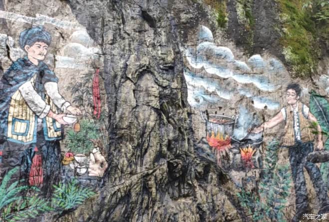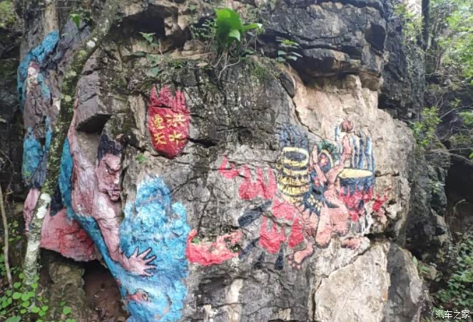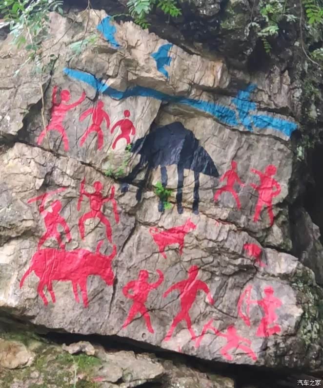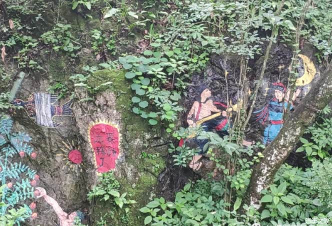 密枝仙境多是木板铺成的步道,少量的石阶路,环境不错,绿树成荫,空气凉爽清新,应该富含氧离子,最大的看点是沿路石壁上,画满了壁画,反映彝族人民日常生活、劳动、爱情、先人的故事、崇拜的图腾等等,栩栩如生,令人回味。