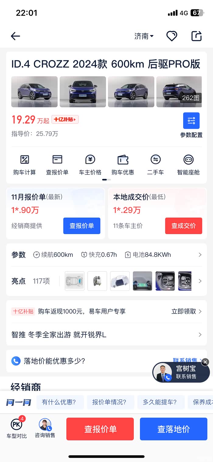 ID4 C 长续PRO开票17.05送充电桩包安装这价?