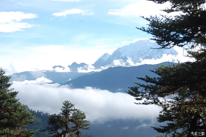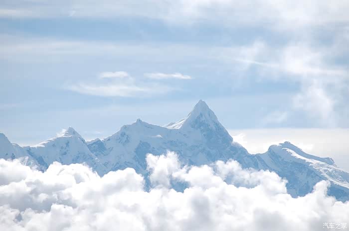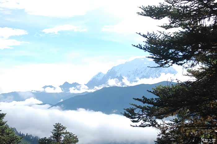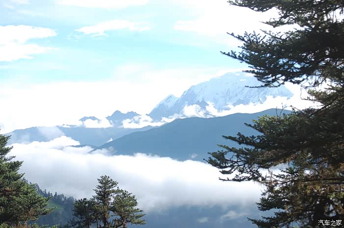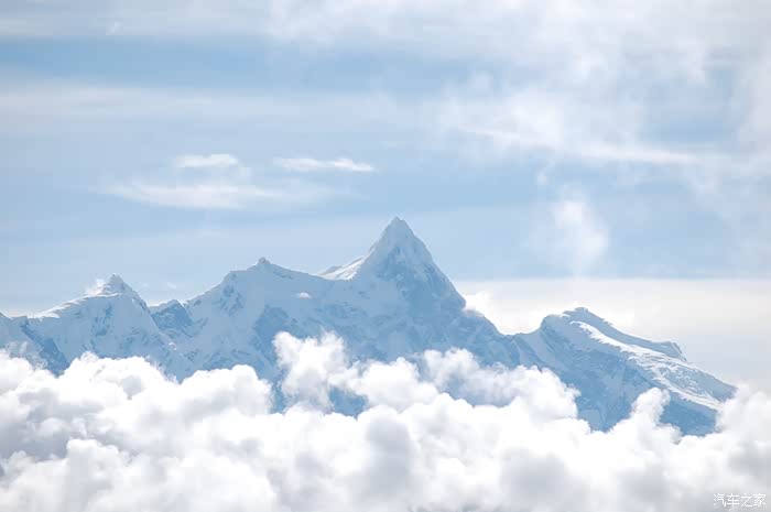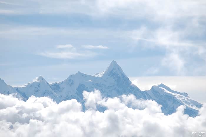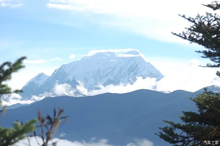 这些照片是用长焦相机拍的。因为技术有限,所以拍的不是特别好,不过就这种运气也是特别的好了。因为在我们后面的那三位车友,他们来到这里的时时候,已经快到中午了,所以他们最后拍的照片并没有看到这个南迦巴瓦峰的阵容,而是拍到了一大团乌云。所以这个就是运气吧。能够拍到这个山峰的真容,也不枉我起的那么早。