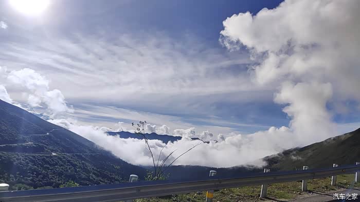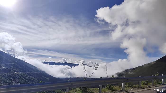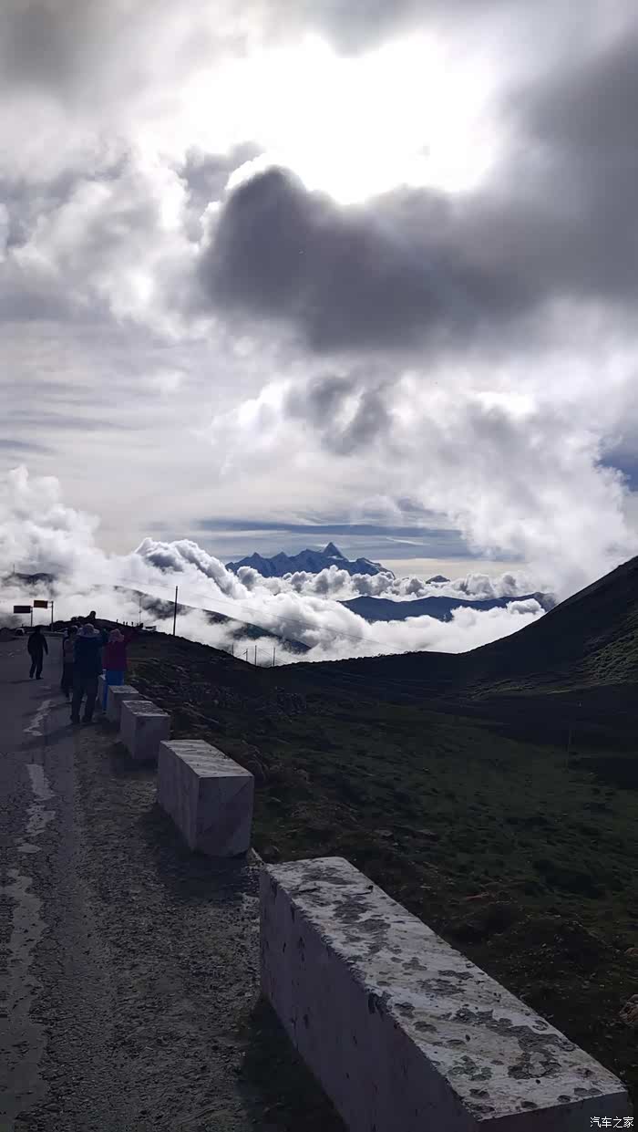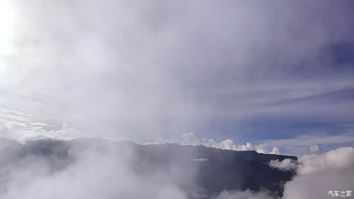 慢慢地快到山顶的时候。车辆也就开进了云里。其实这个时候应该不是雾气。。是真正的云层。把车辆开进云层里面是一种什么样的感觉?这种感觉会让你飘飘欲仙,打开窗户,你伸手就可以摸到天空的云彩。是不是完成了儿时的梦想?我想摘一朵天上的云彩。现在我就摘到了。