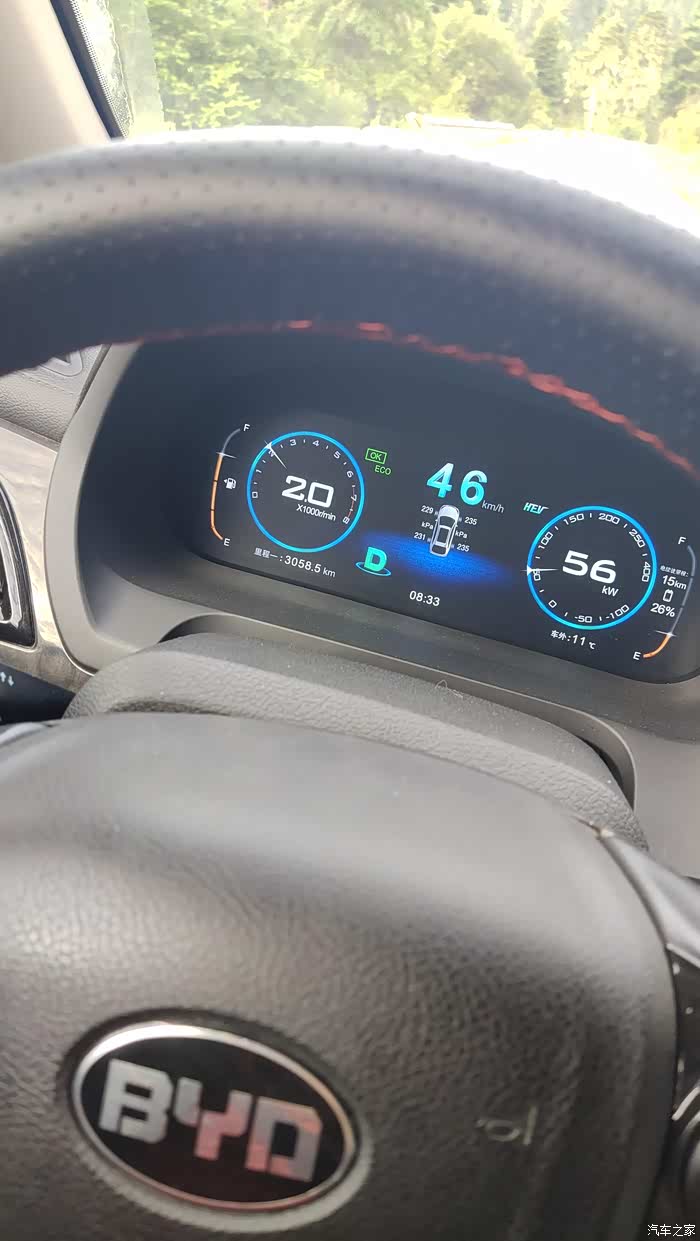 继续往前行驶几公里之后就开始爬山了。这个时候的电量也不是特别的充足。因为昨天晚上堵车的时候电量消耗太快。而且晚上住的地方也并没有找到可以充电的地方。所以电量不足,不过好在汽油比较充足。所以就开启了爬山模式。
