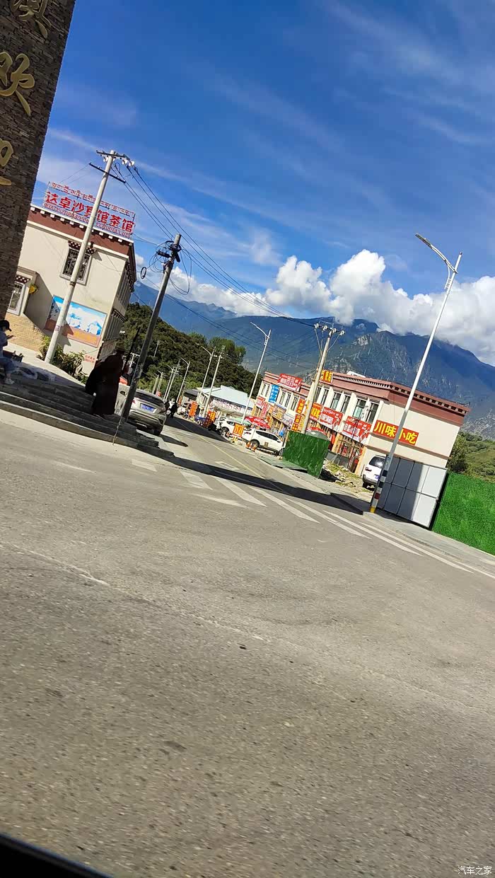 我们最后从一个叫工布江达县的地方下了高速。从这里一会儿还可以继续上高速,如果真的不想上高速了。可以顺着高速的旁边走国道继续前行。不过我们还是先吃饭我们现在停留的地方只是公布江达县的一个小镇吧,因为这里的街道看着特别的宽,但是两边基本上都没有人。只有个别的饭店在开门,或者是因为大部分人都出去打工了,所以这个县城显得比较萧条吧。