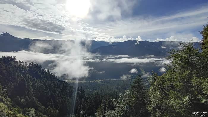 这里有一个观景台。不过不是官方修建的,是一个相对平坦的。可以停车的地方。所以我们在这里停下来观看了一下鲁朗镇云海。因为在来之前我也对这个小镇做了一些细微的了。这里的景区游玩的地方基本上我前面没有什么。区别。可以选择骑马射箭。还有品尝一些毛牛肉之类的。但是真正漂亮的其实是这里的云海和远处的雪山。